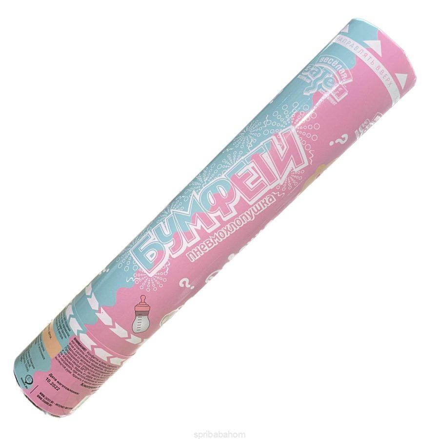 Желаете торжественно сообщить родным и близким пол вашего будущего ребенка? Устраиваете genderrevealparty (гендерная вечеринка)? Тогда эта хлопушка отлично подойдет для данного события. Выстреливает бумажное конфетти розового или голубого цвета. Пневматическое устройство, аналог хлопушки, абсолютно безопасное, предназначено для использования в помещении и на улице, дальность выстрела 6-8 м.