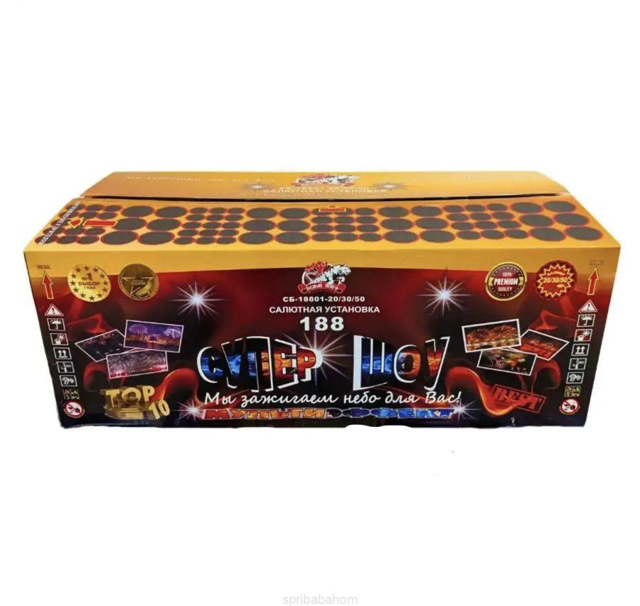 СУПЕР ШОУ (СБ-188801-20/30/50) Артикул: СБ-188801-20/30/50 1200.00 BYN 1300.00 BYN В корзину В избранное Характеристики Отзывы Калибр/мм: 20/30/50мм Кол-во выстрелов: 188 Время/секунд: 138 секунд