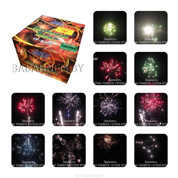 Янтарный закат (FP-B105) озаряет небо красочными огнями. Вверх взлетают большие залпы салютов, которые разливаются во всевозможные фигуры красного, зеленого, синего, фиолетового и белого оттенков. Все это сопровождается завораживающим треском и блестящим мерцанием. Такой фейерверк внесет особый шарм в любое торжество и праздничное мероприятие.Дарите окружающим волшебство, приобретая салюты на сайте Spribabahom которые запомнится надолго!